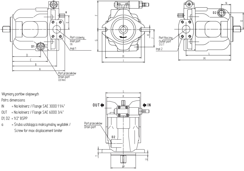 | A (mm) | B (mm) | C (mm) | D (mm) | E (mm) | F (mm) | G (mm) | H (mm) | I (mm) | J (mm) | K (mm) | L (mm) | M (mm) | N (mm) | O (mm) | ØP (mm) | R (mm) | S (mm) | T (mm) | U (mm) |