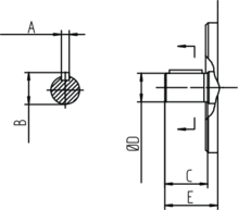 | A mm (in) | B mm (in) | C mm (in) | ØD mm (in) | E mm (in) |