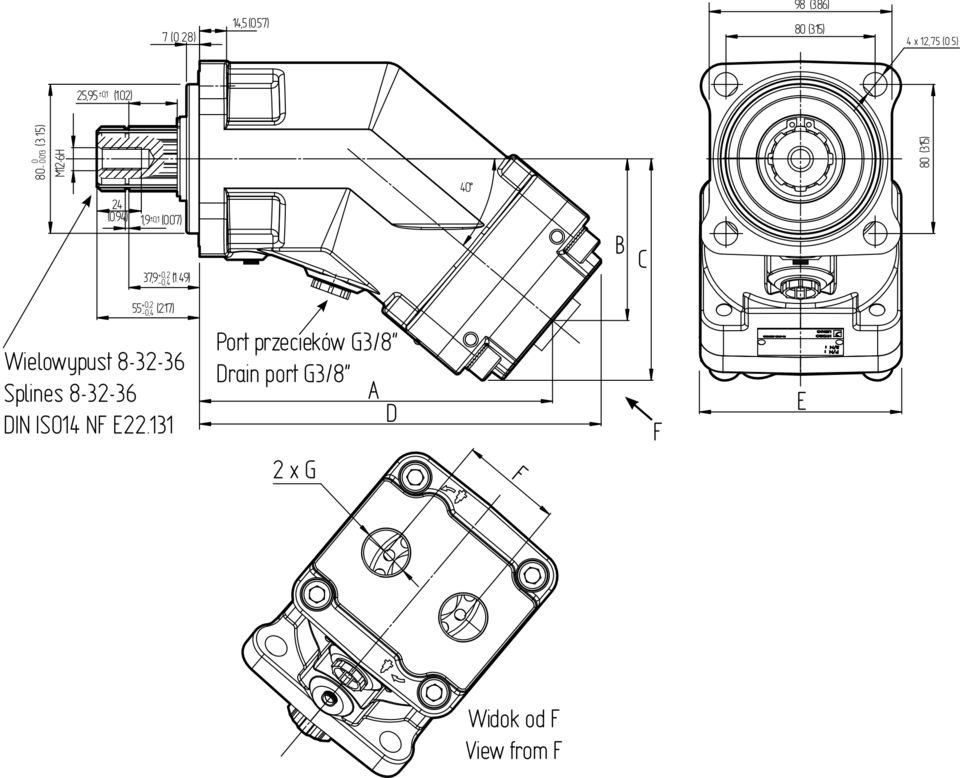 Silnik hydrauliczny tłoczkowy MXP80 092925 do napędu pomp wody w wozach asenizacyjnych, do wciągarek, kompresorów, wentylatorów, betoniarek itp.